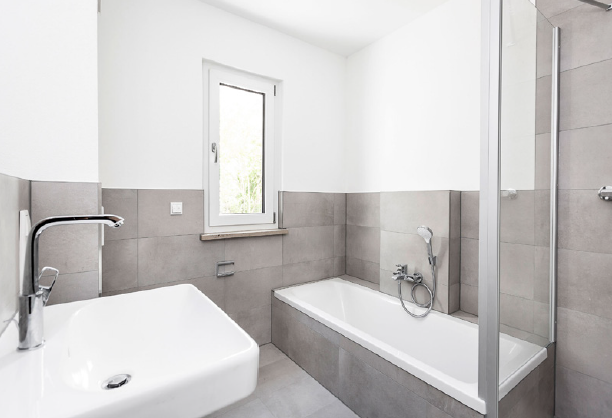 - Ausstattung des Bades Dusche Fenster
