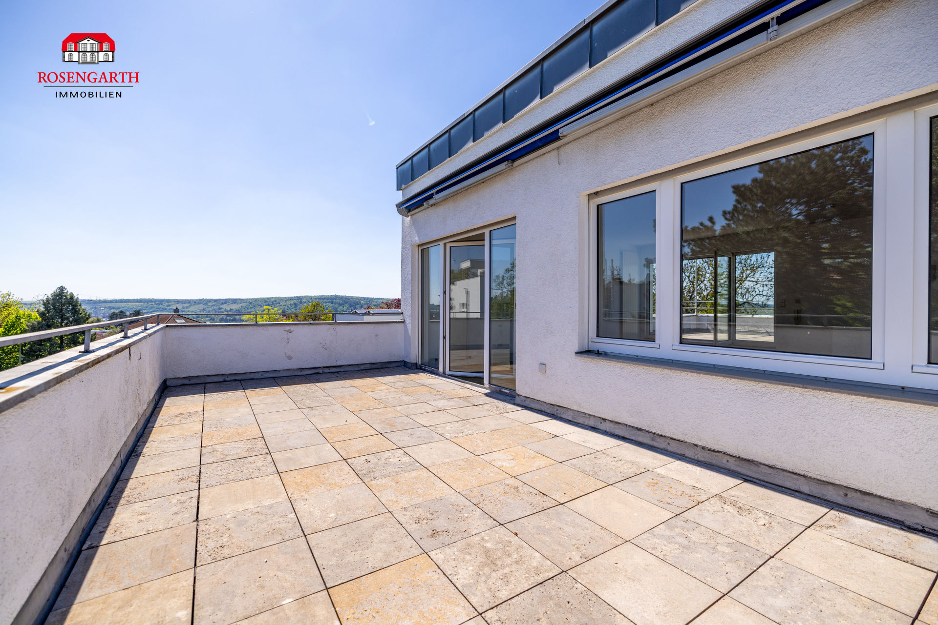 Die beiden spektakulären Dachterrassen, eine Süd/ Ost und die andre nach Süd/ West gerichtet ermöglicht einen freien, unverbaubaren Blick über die gesamte Stadt Würzburg – sowie die Mitbenutzung des traumhaften Gartens – ein echtes Highlight.